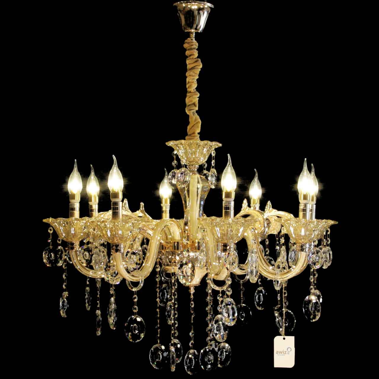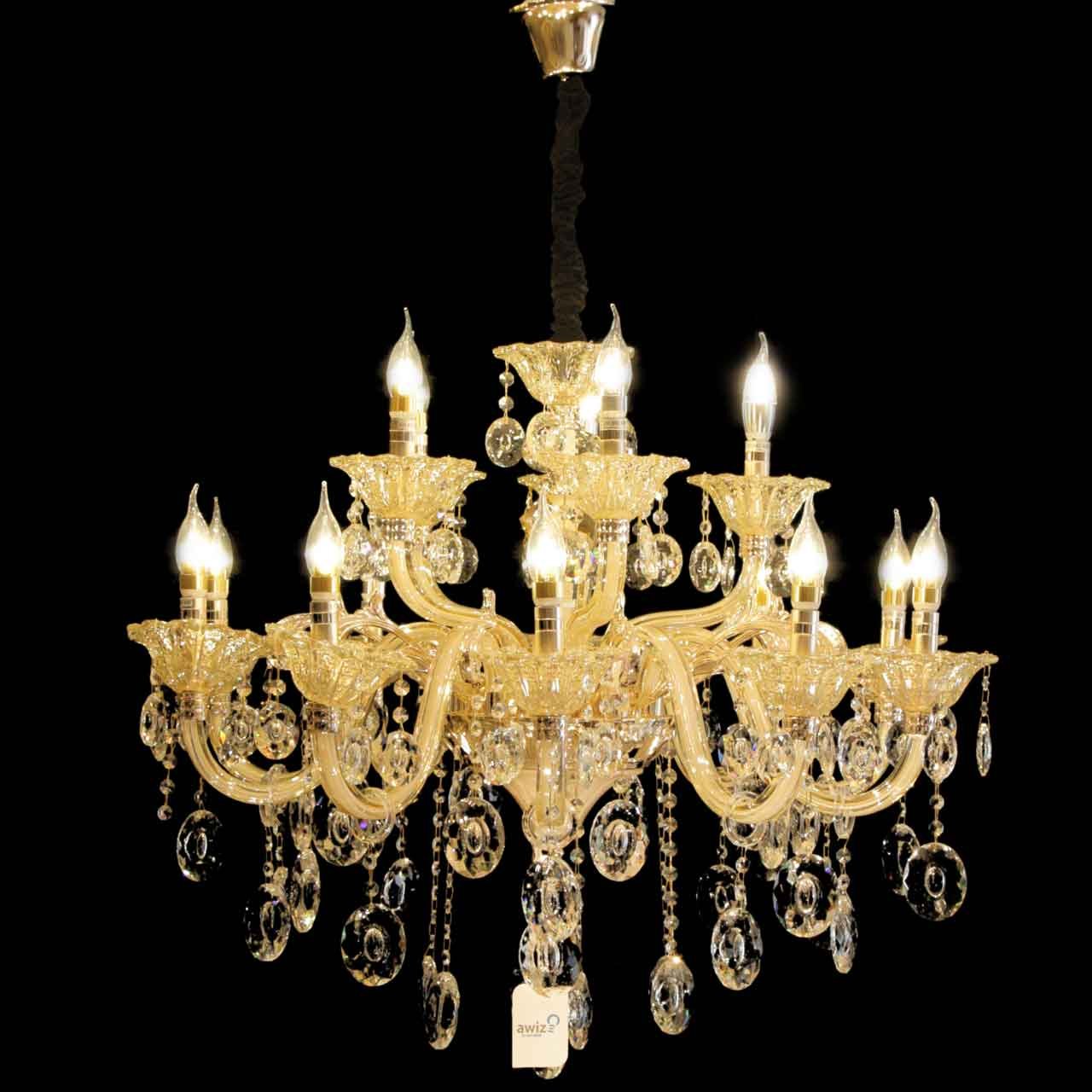 Krem cam kollu avize, 12, 8 ve 6 kollu versiyonları mevcuttur.