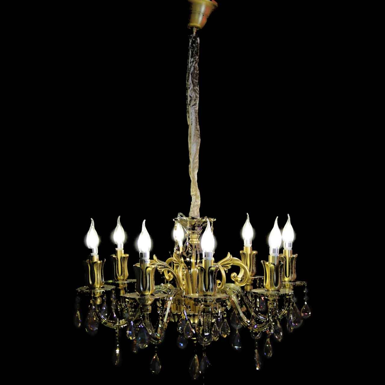 Prinç eskitme destaylı, K9 kristal cam kollu klasik avize modeli. 6 ve 8 kol seçenekli.